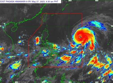 Is forecast to enter PAR on Friday evening (May 26) or Saturday morning (May 27) (Eagle News) — Super Typhoon “Mawar” has further intensified over the Philippine Sea. The Philippine Atmospheric Geophysical and Astronomical Services Administration said the center of its eye was so far located 1,840 km east of Southeastern Luzon. It is packing maximum sustained winds of 205 kph near the center and a gustiness of up to 250 kph. “Mawar” is currently […]