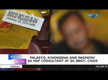 (Eagle News) — The Palace on Thursday, Jan. 31, condemned as “deplorable” the killings of a National Democratic Front of the Philippines consultant and a Quezon City barangay chair. In a statement, Presidential Spokesperson Salvador Panelo urged a “speedy and impartial investigation” into the killings of NDFP consultant Randy Malayao and Barangay Bagong Silangan chair Crisell Beltran, saying “everyone must be accountable before the law.” “Politics or differences in ideology or religion can never be […]