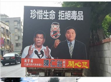 (Eagle News) — A picture of President Rodrigo Duterte is apparently being used to promote the anti-drug campaign of a politician in Taiwan. The mobile billboard in Hualien was captured in a photograph and uploaded by Facebook user Nieviv Sucuaje in her account. Duterte rose to the presidency on an anti-drugs, anti-criminality and anti-corruption platform.