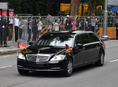 SINGAPORE, Singapore (AFP) — North Korean leader Kim Jong Un’s motorcade left his Singapore hotel Tuesday for his unprecedented summit with US President Donald Trump. A North Korean flag flew from Kim’s limousine as it drove to the summit venue in a convoy of about 20 vehicles, with onlookers lining the street and taking pictures. © Agence France-Presse