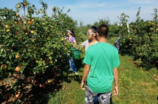 Apple pickers take advantage of last weekend before school begins in Maryland, USA