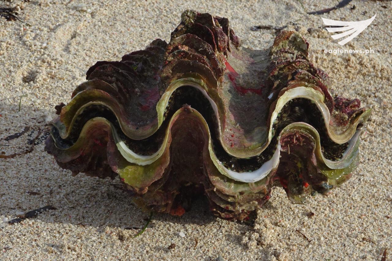 (Eagle News) — This huge shellfish was seen by Eagle News correspondent Neil Domingo on the shores of Maniwaya island in Marinduque on February 5, 2016. It was estimated to be one foot-wide. This kind of shellfish is rare, according to the people living in the area. Only a few of them remain so residents there have decided to guard this big shellfish found on their shores, according to our correspondent.