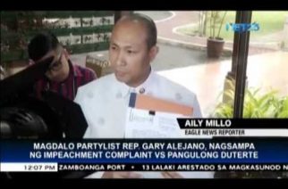 (Eagle News) — The Magdalo partylist has filed an impeachment complaint against President Rodrigo Duterte, saying they believed he was not fit to become the country’s chief executive. In a press conference on Thursday, Rep. Gary Alejano said the complaint filed in the House of Representatives was based on five grounds: culpable violation of the the Constitution, bribery, betrayal of public trust, graft and corruption, and other high crimes. He noted what he said was the “state policy […]
