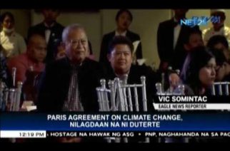 (Eagle News) — Senator Loren Legarda hailed on Wednesday President Rodrigo Duterte’s signing of the Paris Agreement, calling the day of his signing “a great day for..climate warriors.” Legarda, chair of the Senate Committee on Climate Change, made the statement a day after Duterte signed the Paris Agreement on Climate Change that compels ratifying countries to take steps to limit global warming to well below 2 degrees Celsius above pre-industrial levels, and to limit the temperature increase […]