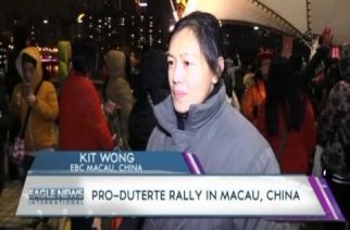 (Eagle News) — Overseas Filipino workers held a gathering to rally support for Philippine president Rodrigo Duterte in Macau, China. The rally staged by the United Democracy and Duterte Supporters or United DDS was also held over the weekend, at about the same time that hundreds of thousands of people showed up in Manila to express their support for the President. Eagle News Service correspondent in Macau, China Kit Wong interviewed some of those who came […]