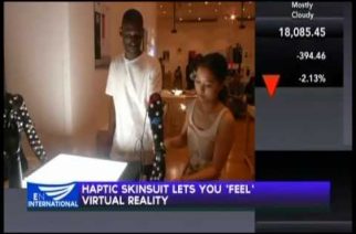 Designers from London’s Royal College of Art have created a skinsuit which allows the user to go from the physical to the virtual world by ‘feeling’ invisible objects. Reuters