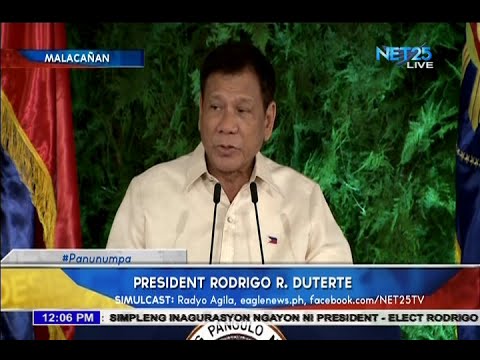 (Eagle News) — At exactly 12 noon on June 30, 2016, President Rodrigo Duterte took his oath as the 16th Philippine President in simple ceremonies inside Malacanang’s Rizal Hall. Administering the oath was Supreme Court Associate Justice Bienvenido Reyes. His youngest daughter, Veronica “Kitty” Duterte held the Bible used for the oath-taking while his two sons, Paolo and Sebastian, and daughter, Sara Dutrete, looked on. At exact 12:01 p.m., immediately after his oath-taking, President Duterte […]