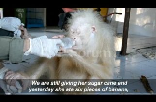 BORNEO, Indonesia (AFP) — A rare albino orangutan rescued in the Indonesian part of Borneo island is recovering well according to its veterinarian. This was after it was saved last month from villagers who had been keeping her in a cage. https://youtu.be/7HgoAZBCzCM