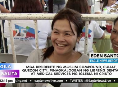 (Eagle News) — Naging matagumpay ang isinagawang lingap sa mamamayan ng Iglesia Ni Cristo sa mga mahihirap na komunidad sa bansa at maging sa iba’t-ibang panig ng mundo. Sa pagkakataong ito, ang mga residente naman ng Muslim compound sa Culiat, Quezon City ang nilingap ng Iglesia Ni Cristo sa ilalim ng programang “Lingap Laban Sa Kahirapan” na inilunsad ng tagapamahalang pangkalahatan ng Iglesia Ni Cristo, ang kapatid na Eduardo V. Manalo. Nagkaloob ang Iglesia Ni […]