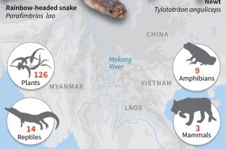 BANGKOK, Thailand (AFP) — A rainbow-headed snake, a tiny frog and a lizard with dragon-like horns are among more than 150 new species confirmed by scientists last year in the ecologically diverse but threatened Mekong region, researchers said on Monday. Winding its way from the Tibetan plateau through the mountains and jungles of Southeast Asia, the Mekong river helps sustain one of the most diverse regions on the planet. Each year scientists announce new species, […]