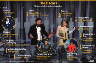 HOLLYWOOD, United States (AFP) — Graphic showing winners in main categories at the 89th Oscars.