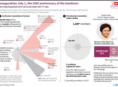 Infographic about how Hong Kong picked their new leader Carrie Lam, with 777 votes from the Election Committee.