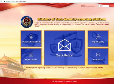 BEIJING, China (AFP) — China has stepped up its campaign against foreign espionage with a website in Mandarin and English encouraging people to report national security threats such as bids to “overthrow the socialist system”. The website, www.12339.gov.cn, launched by the Ministry of National Security on Sunday, also urges anyone to report attempts by Chinese nationals or foreigners to bribe state or military officials, instigate armed riots or incite ethnic separatism. Potential problematic behavior […]