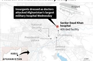 by Emal HAIDARY Agence France-Presse KABUL, Afghanistan (AFP) — Explosions and gunfire rattled Kabul’s diplomatic district Wednesday when insurgents dressed as doctors stormed Afghanistan’s largest military hospital, officials said, as growing insecurity besets the war-battered country. No group immediately claimed responsibility for the ongoing assault on the Sardar Daud Khan hospital, but it comes as the Taliban ramp up attacks even before the official start of their annual spring offensive. At least three people were so […]