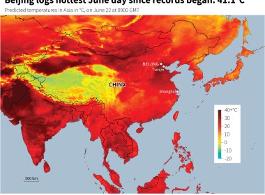 BEIJING, June 23, 2023 (AFP) — China issued its highest-level heat alert for northern parts of the country on Friday as the capital baked in temperatures hovering around 40 degrees Celsius (104 Fahrenheit). A day earlier Beijing logged its hottest June day since records began with the mercury edging up to 41.1C, breaking a record set in 1961. The city is accustomed to sweltering summers but temperatures across China have been unusually high in recent […]