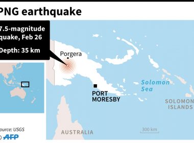 SYDNEY, Australia (AFP) — A powerful 7.5-magnitude earthquake struck Papua New Guinea early Monday, with unconfirmed reports of blackouts and damage to buildings, officials said. The quake’s epicentre was around 90 kilometres (55 miles) south of Porgera in Enga province, according to the US Geological Survey, and hit at a depth of 35 kilometres. The quake hit PNG’s mountainous interior and US scientists said there was no tsunami threat. Felix Taranu, a seismologist at the […]