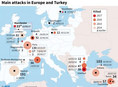 PARIS, France (AFP) – The deadly bombing at a pop concert in the British city of Manchester which killed 22 people including children was the latest attack against targets in Europe, most of them by radical Islamists. Police say they believe Monday night’s attack, just after US star Ariana Grande, a favourite among teens and pre-teens, had ended her performance, was committed by one man. No-one has yet claimed responsibility. Here are some of the major […]