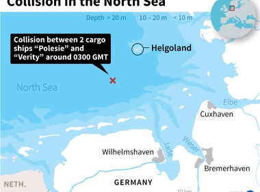By Femke COLBORNE BERLIN, Oct 24, 2023 (AFP) – One person has died and four are missing from the crew of a cargo ship that sank after colliding with another vessel in the North Sea, German authorities said on Tuesday. Two further crew members from the ship were rescued after the collision with a second cargo vessel early on Tuesday, German Sea Rescue Society (DGzRS) spokesman Christian Stipeldey said. The accident happened about 22 kilometres […]