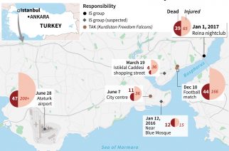 by Raziye Akkoc with Stuart Williams in Istanbul Agence France-Presse ANKARA, Turkey (AFP) – A car bombing rocked the Turkish city of Izmir on Thursday, killing at least two people and triggering a shootout that left two suspected militants dead, as authorities chased the fugitive killer behind the New Year attack in Istanbul. Turkey is on edge after the shooting rampage at the Reina nightclub unleashed shortly after revellers rang in 2017 which killed 39 […]