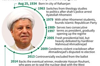 by Ali Noorani Agence France-Presse TEHRAN, Iran (AFP) – Iran began three days of mourning Monday after the death of ex-president Akbar Hashemi Rafsanjani, a pillar of the Islamic revolution who became a leading counterweight to hardliners. Tributes poured in for the moderate cleric, including from President Hassan Rouhani, who was reportedly at Rafsanjani’s bedside before he died of a heart attack aged 82. “Islam lost a valuable treasure, Iran an outstanding general, the Islamic […]