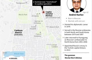 by Adem ALTAN with Stuart WILLIAMS in Istanbul Agence France-Presse ANKARA, Turkey (AFP) – Russian investigators arrived in Turkey on Tuesday to probe the assassination of Moscow’s ambassador at an Ankara art show, as both sides pledged the murder would not damage improving relations. Veteran diplomat Andrei Karlov was shot nine times in the back by off-duty Turkish policeman Mevlut Mert Altintas at the art gallery opening of a show of Russian photography on […]