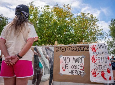 US man shot during protest against conquistador statue