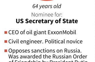by Becca MILFELD Agence France Presse WASHINGTON, United States (AFP) – US President-elect Donald Trump on Tuesday tapped ExxonMobil chief Rex Tillerson as his nominee to be secretary of state, despite concerns on both sides of the political aisle about the oilman’s deep ties to Russia. The nomination was the one most awaited by observers at home and abroad as the 70-year-old Republican billionaire builds his cabinet before taking office on January 20 — and […]