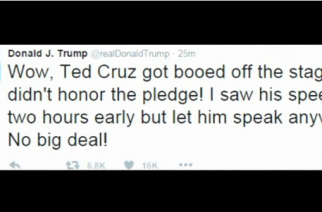 Trump tweets “Cruz got booed off the stage, didn’t honor the pledge!”