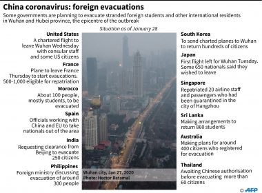 Foreigners flown out of China virus epicenter as death toll hits 132