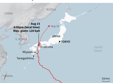 TOKYO, Japan (AFP) — A powerful tropical storm lashed Japan on Thursday, bringing strong winds and torrential rain that claimed at least one life, prompted warnings of landslides and flooding, and sparked evacuation advisories and travel chaos at a peak holiday period. Severe Tropical Storm Krosa — one notch below a typhoon — slammed into the southern Hiroshima region, packing wind gusts of up to 126 kilometers (78 miles) per hour. Dramatic television footage showed […]