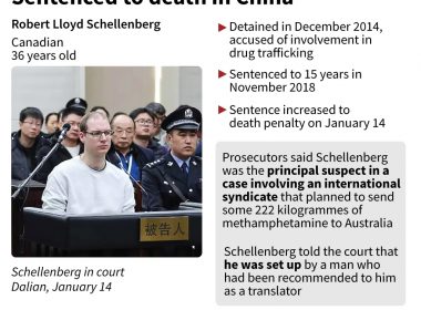 BEIJING, China (AFP) — A Chinese court was expected to hold a hearing Thursday on a Canadian man’s appeal against a death sentence for drug smuggling in a case that has deepened a diplomatic spat between Beijing and Ottawa. Robert Lloyd Schellenberg, 36, was sentenced to death in January after a court deemed his previous 15-year prison sentence too lenient. The appeal hearing comes a day after a top executive of Chinese telecom giant Huawei, […]