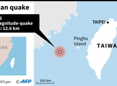 TAIPEI, Taiwan (AFP) — A 5.7-magnitude earthquake struck off the western coast of Taiwan Monday, the US Geological Survey said, and was felt hundreds of kilometres away in Hong Kong. The quake hit around 100 kilometres (60 miles) off the island of Penghu in the Taiwan Strait on Monday morning, at a depth of 13 kilometres. There were no immediate reports of casualties or damage from the quake, which the USGS had initially reported at […]