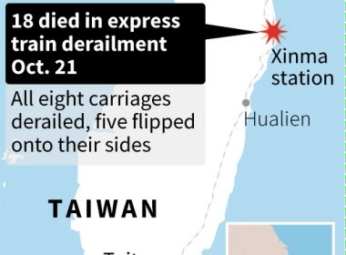by Amber WANG / Sean CHANG Agence France-Presse YILAN, Taiwan (AFP) — Taiwan’s president pushed for a swift investigation Monday after an express train derailed on a coastal tourist route, killing 18 people as it sent sleeping passengers flying from their seats. The crash on the popular east coast line injured another 187 people Sunday and left the Puyuma Express lying zig-zagged across the tracks in the island’s worst rail accident for a quarter century. […]