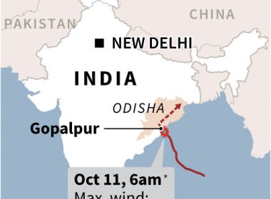 NEW DELHI, India (AFP) — A cyclone packing winds of up to 150 kilometers (95 miles) per hour and heavy rains hit eastern India early Thursday, with over 300,000 people evacuated from low-lying areas and two men reported killed. Officials in neighboring Bangladesh said they were on alert in the coastal district of Cox’s Bazar, home to around one million Rohingya refugees from Myanmar living in tarpaulin and bamboo shelters. Cyclone Titli, which intensified into […]