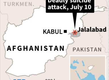 JALALABAD, Afghanistan (AFP) — A suicide attacker blew himself up near an Afghan security forces vehicle on Tuesday, killing at least 10 people, mostly civilians, officials said, in the latest deadly violence to rock the country. The explosion in the eastern city of Jalalabad also left at least four people wounded and set a nearby petrol station alight, the provincial governor’s spokesman Attaullah Khogyani told AFP. Eight civilians were among the dead, Khogyani added. Some of […]