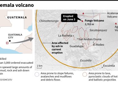 by Edgar CALDERON / Henry MORALES Agence France-Presse GUATEMALA CITY (AFP) — Nearly 200 people are missing and at least 75 have been killed since Guatemala’s Fuego volcano began erupting over the weekend, officials said Tuesday. Seven communities in already devastated areas were evacuated as the volcano’s activity increased, with rescue operations halted. In the city of Escuintla, near the summit, panicked locals rushed to their cars to escape, causing chaotic traffic. An AFP photographer […]