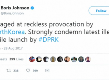 Reuters — UK foreign secretary Boris Johnson said in a tweet late on Monday (August 28) he was “outraged” by “reckless provocation” of North Korea’s latest missile launch. North Korea fired a missile early on Tuesday that flew over Japan and landed in the Pacific waters off the northern region of Hokkaido, South Korea and Japan said, in a sharp escalation of tensions on the Korean peninsula. The last North Korean projectile to fly over […]