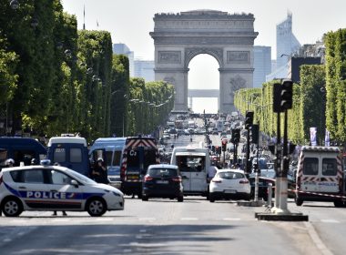 Car explodes after hitting police van on Paris’s Champs-Elysees