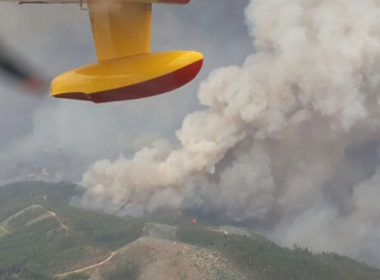 Full destruction from Portugal fire seen from sky as Spanish air force dump gallons of water over wildfire