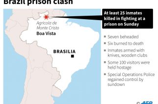 by Natalia Ramos SAO PAULO, Brazil | AFP | — At least 25 inmates died Sunday in clashes between two rival factions in a prison in far northern Brazil, the latest episode of violence shaking the country’s underfunded and overcrowded prison system. Seven of the dead were beheaded and six burned to death in fighting at a prison in Boa Vista, the capital of Roraima state, the news site G1 reported, citing local police. […]
