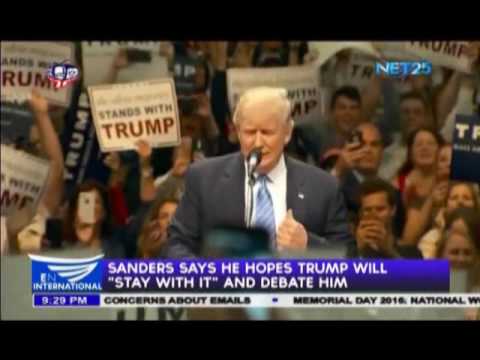 QUEZON City, Philippines – In the US, Democratic presidential candidate Bernie Sanders said to his supporters in California that he challenged Donald Trump in a debate and added that Trump accepted it and that Sanders hoped that Trump will stay with it. Sanders and Trump plans to stage a debate that will sideline Democratic candidate Hillary Clinton. (Eagle News Service Described by Jay Paul Carlos, Video Editing and Uploaded by Vince Alvin Villarin)