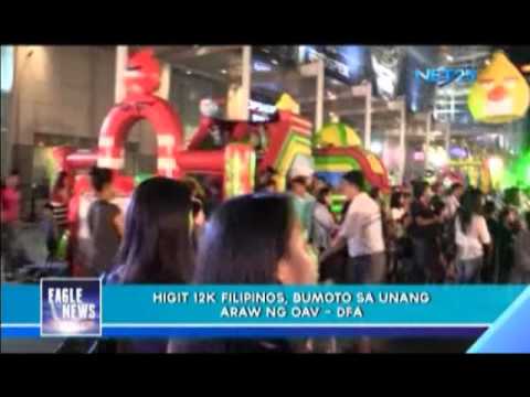 MANILA, Philippines – The Department of Foreign Affairs announced that more than 12, 000 overseas Filipinos voted in the first day of the overseas absentee voting last April 9, with the Hong Kong polls having the largest voter turnout. (Eagle News Service Described by Jay Paul Carlos, Video Editing by Jericho Morales, Uploaded by Lovely Ann Cruz) https://youtu.be/6OQUtrFk3hc