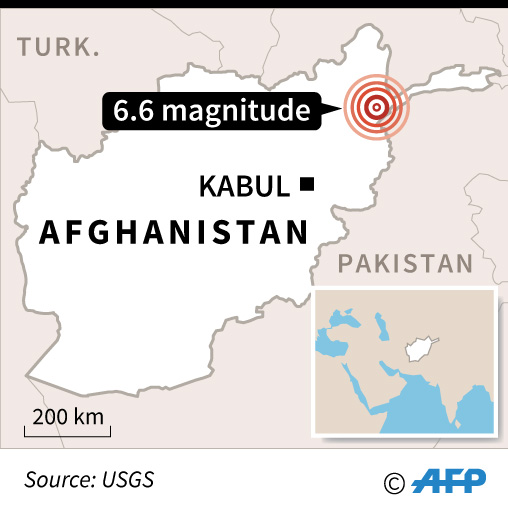KABUL, Afghanistan (AFP) — A 6.6-magnitude quake struck northeast Afghanistan Sunday, the US Geological Survey said, with tremors also felt in Pakistan and India. The quake at a depth of 210 kilometres (130 miles) occurred at 2:58 pm (1028 GMT), 282 km northeast of the capital Kabul. There were no immediate reports of injuries and the USGS said there was a low likelihood of casualties or damage. The quake was felt for a few seconds […]