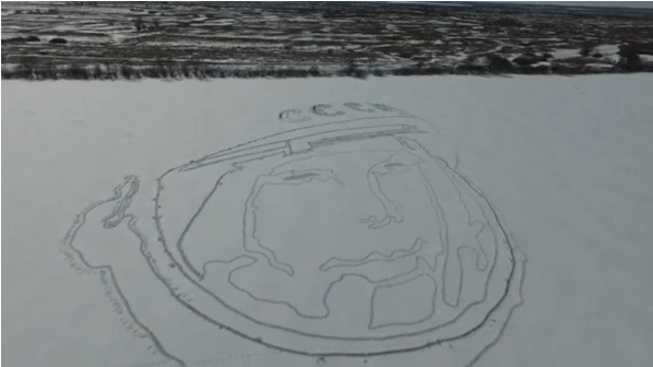 Russian enthusiasts make giant snow portrait of the first astronaut