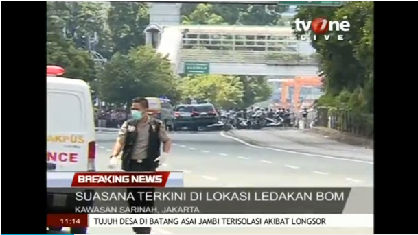 Explosions and gunfight in central Jakarta leave at least three dead