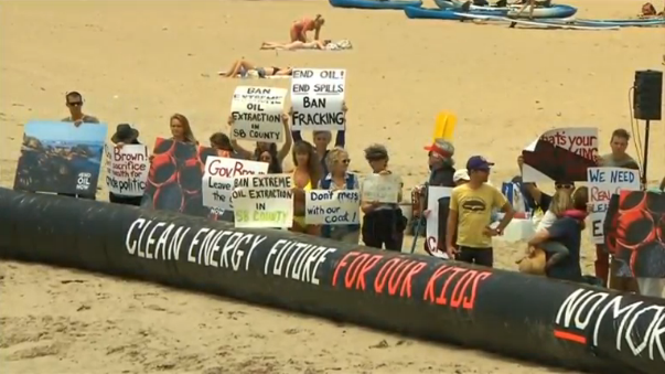 Protesters rally against oil industry as cleanup continues following California oil spill