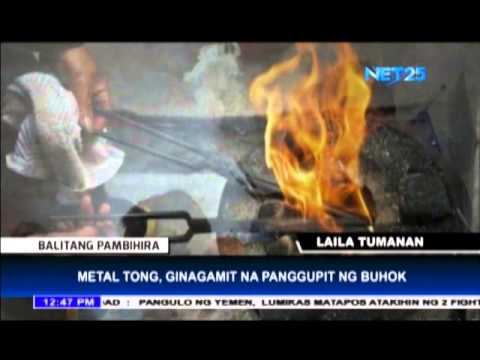 A hairdresser in China makes use of an ancient technique of cutting hair using hot metal tongs.