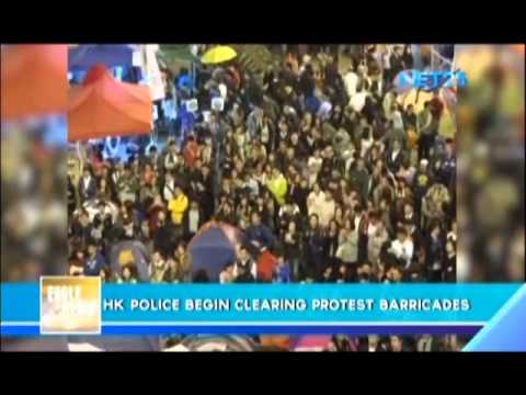 Hong Kong police started clearing barricades in the main protest site in the Admiralty district when a court order was issued in favor of a bus company claiming that the protests disrupted its business.