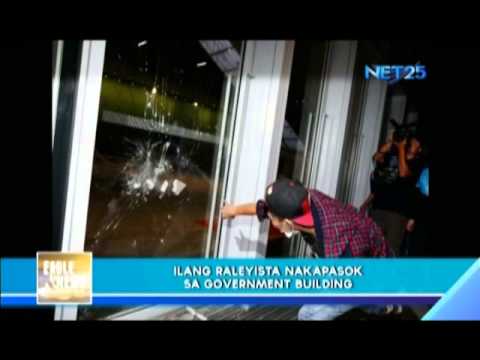A small group of rallyists in Hong Kong entered a government building by destroying said building’s glass doors.