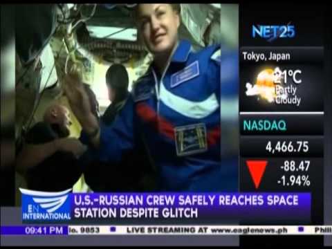 United States and Russian astronauts reach space station safely despite glitch.
